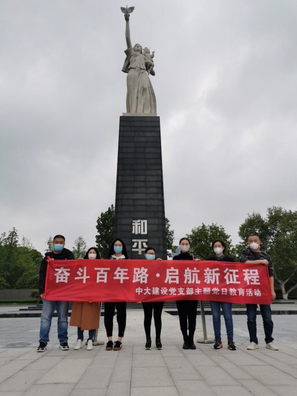 參觀過程中,中大建設黨支部黨員們?yōu)橛鲭y同胞和革命先烈敬獻了鮮花。