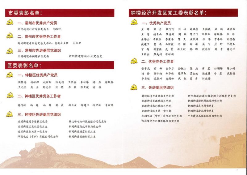 為向先鋒楷模致敬,表彰先進(jìn)樹立標(biāo)桿,發(fā)揮模范引領(lǐng)作用,向黨的百年生日獻(xiàn)禮,6月28日,鐘樓經(jīng)濟(jì)開發(fā)區(qū)“砥礪奮進(jìn)鑄輝煌 鐘開新港序華章”慶祝中國共產(chǎn)黨成立100周年主題活動(dòng)圓滿舉辦。我公司黨支部榮獲“先進(jìn)基層黨組織”稱號(hào)。