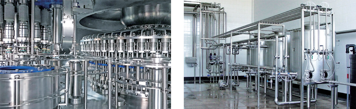 吹瓶、空壓、UHT、灌裝、凈化、瓶蓋殺菌、消毒液調(diào)配、無菌水、無菌氣、倒瓶噴淋、實瓶輸送、套/貼標(biāo)、裝箱、碼垛、電氣控制、工程設(shè)計和施工等。